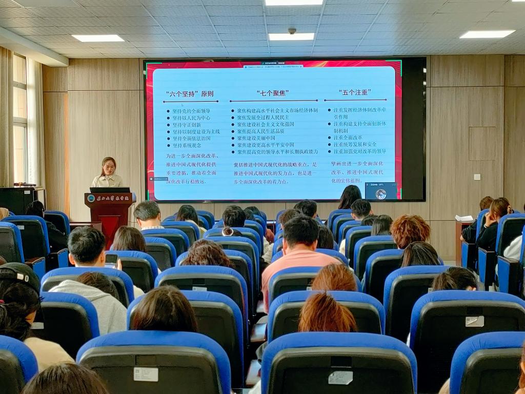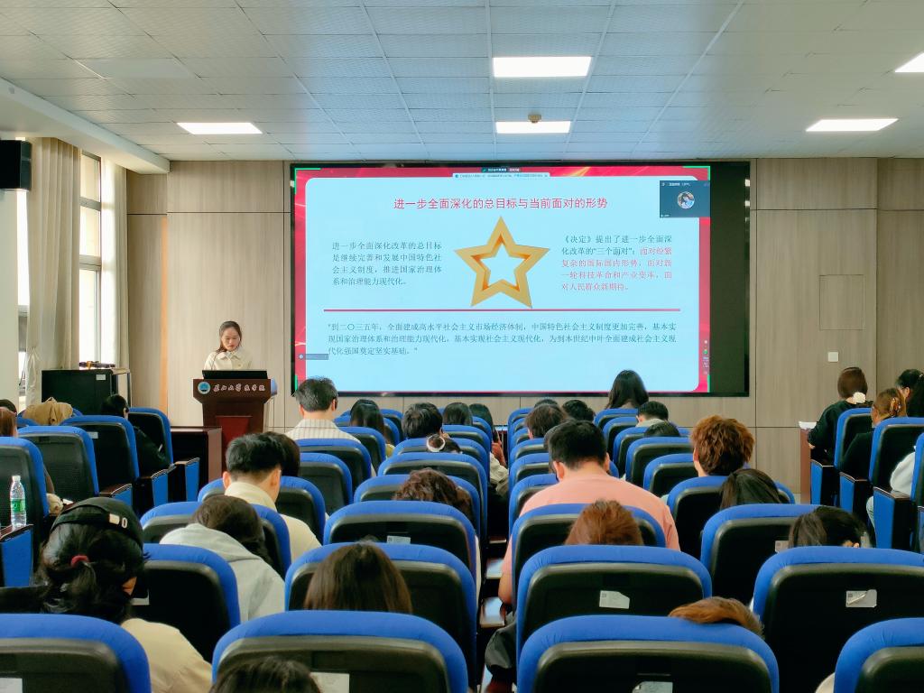 10月28日的培训由必一运动官网分团委书记付雪娇老师主讲。付雪娇老师以"蹄疾步稳谋改革,勇毅笃行谱新篇"为主题,全面、系统、深入地阐释和解读了党的二十届三中全会精神内涵。她从党的二十届三中全会的主题由来、召开意义、做出的部署与创新四个方面,为我们呈现了一幅生动的图景。