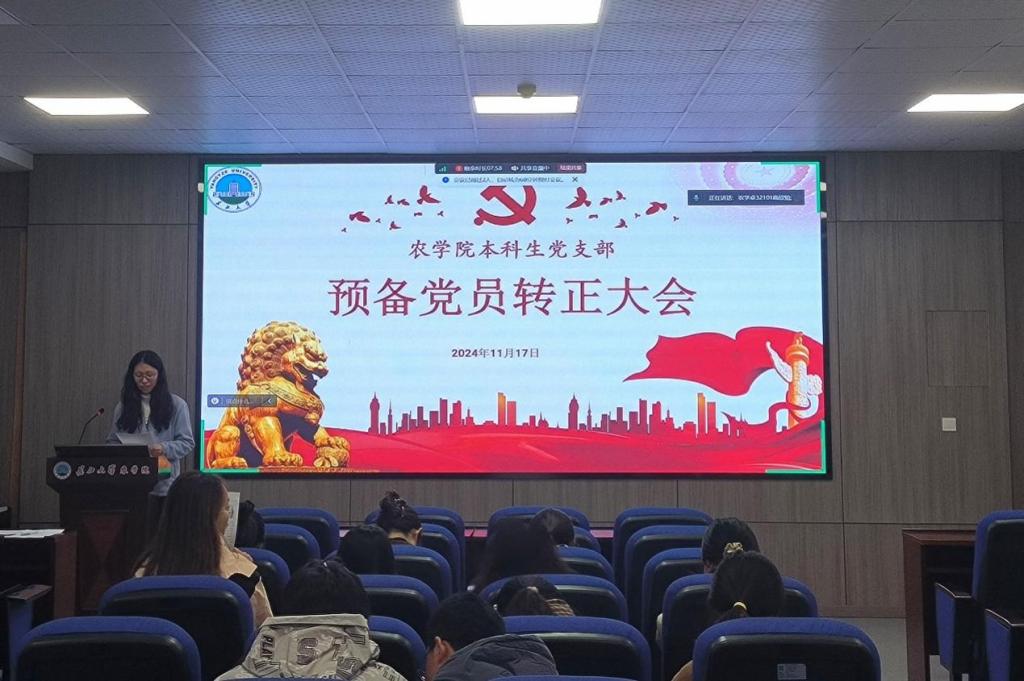 (通讯员 武芊睿)为加强党员队伍建设,进一步加强组织凝聚力,11月17日,必一运动官网本科生党支部在农科大楼3073召开2024年下半年预备党员转正大会,活动以线上线下相结合的方式开展,讨论预备党员王思宇等5名同志的转正问题。应到会党员27名,实到会20名,应到会有表决权的正式党员9人,实到会7名,超过半数,符合党员发展流程。此次会议由支部副书记高欣怡主持。