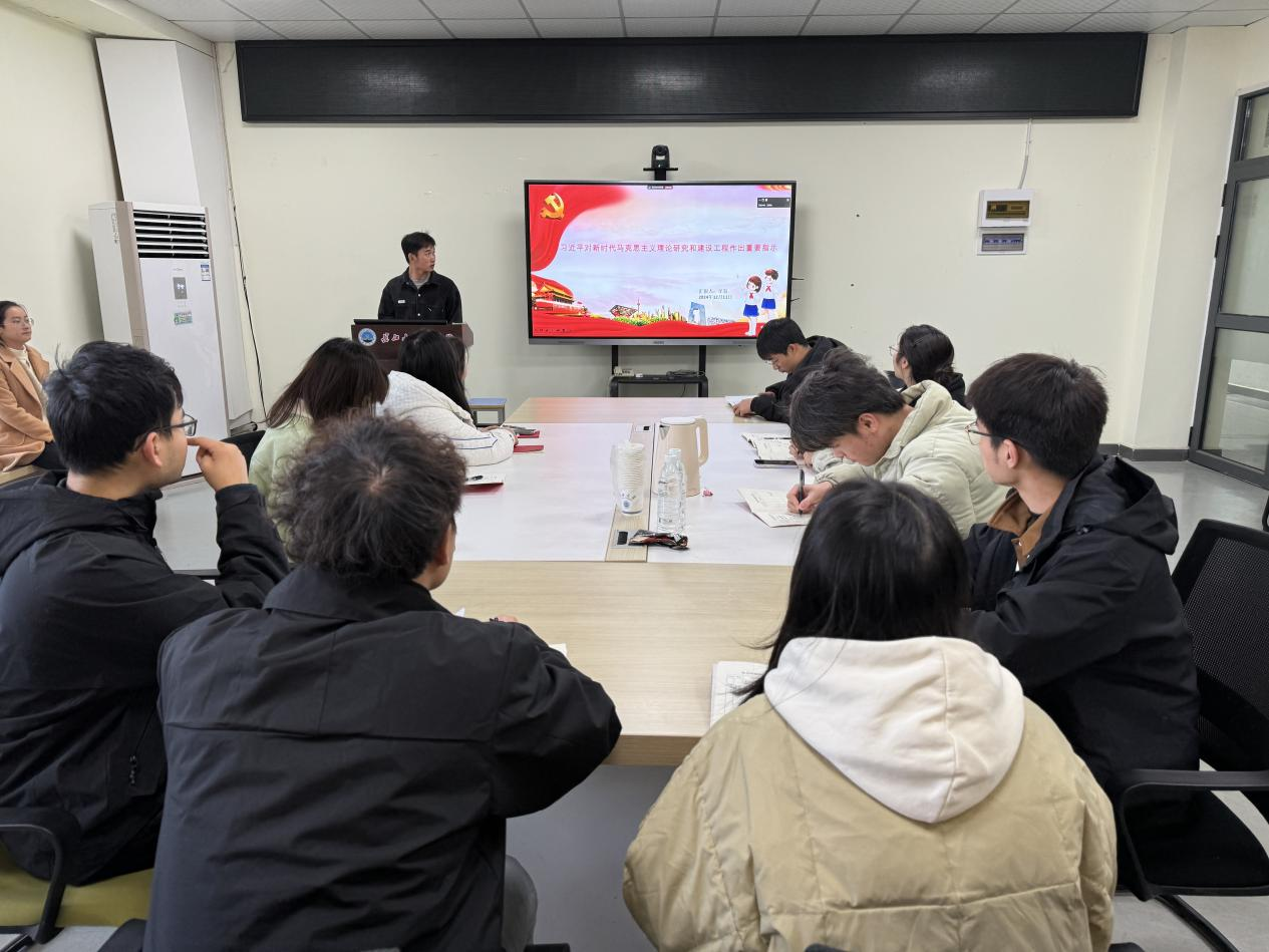 会上,牟枭同志讲授《习近平对新时代马克思主义理论研究和建设工程作出重要指示》党课,从理论背景、核心内容、建设成效、要求与展望四个方面对习近平总书记重要指示进行解读。他认为,总书记的重要指示精神,再次强调了坚持守正创新,为学习党的创新理论指明了方向。深入落实这一指示精神,就要持续做好学习贯彻习近平新时代中国特色社会主义思想的工作,努力为推进马克思主义中国化时代化贡献力量。