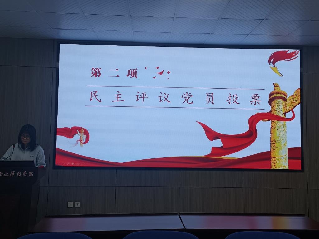 党员自我批评完毕之后,与会党员根据民主评议要求进行评议,按照优秀、合格、基本合格、不合格四个等次评定。党支部委员会根据民主测评情况,综合党员日常情况,实事求是地对每名党员提出评定意见并进行反馈,经过全体党员无记名投票,最终评出高欣怡等4名优秀党员以及陈瑞琪等9名合格党员。
