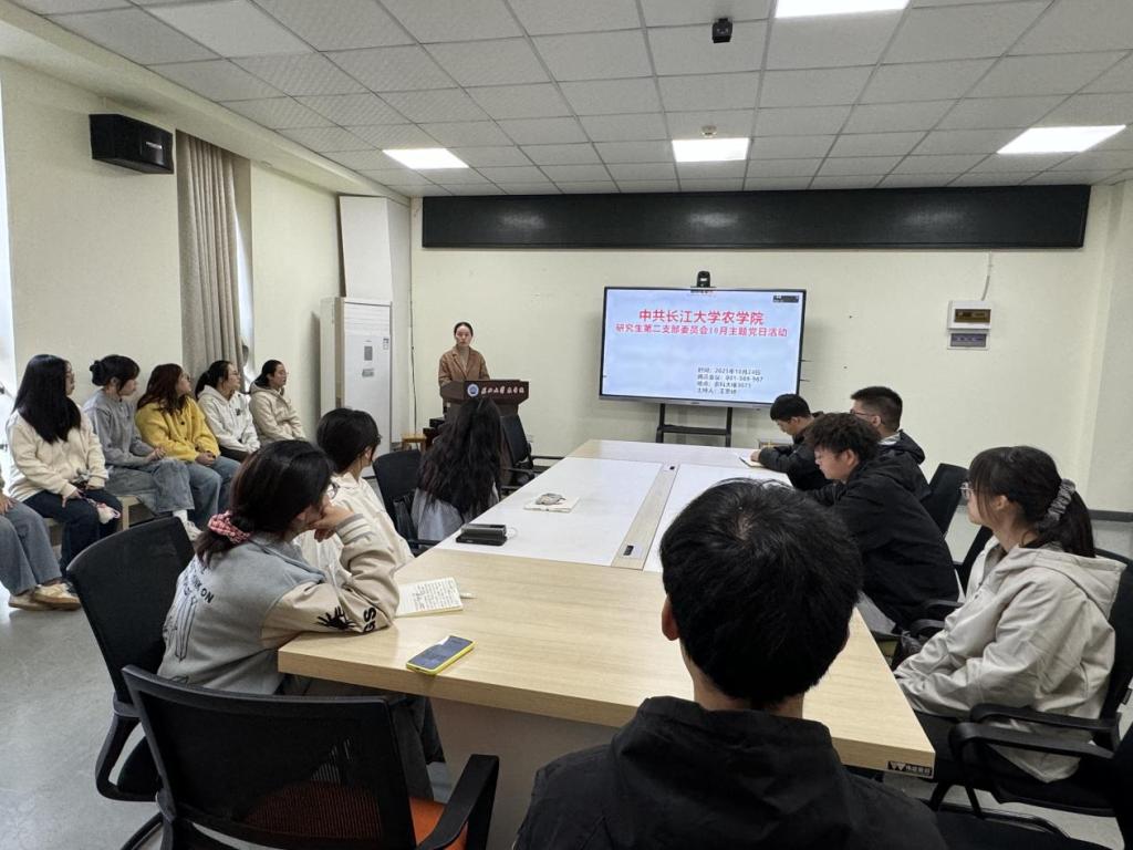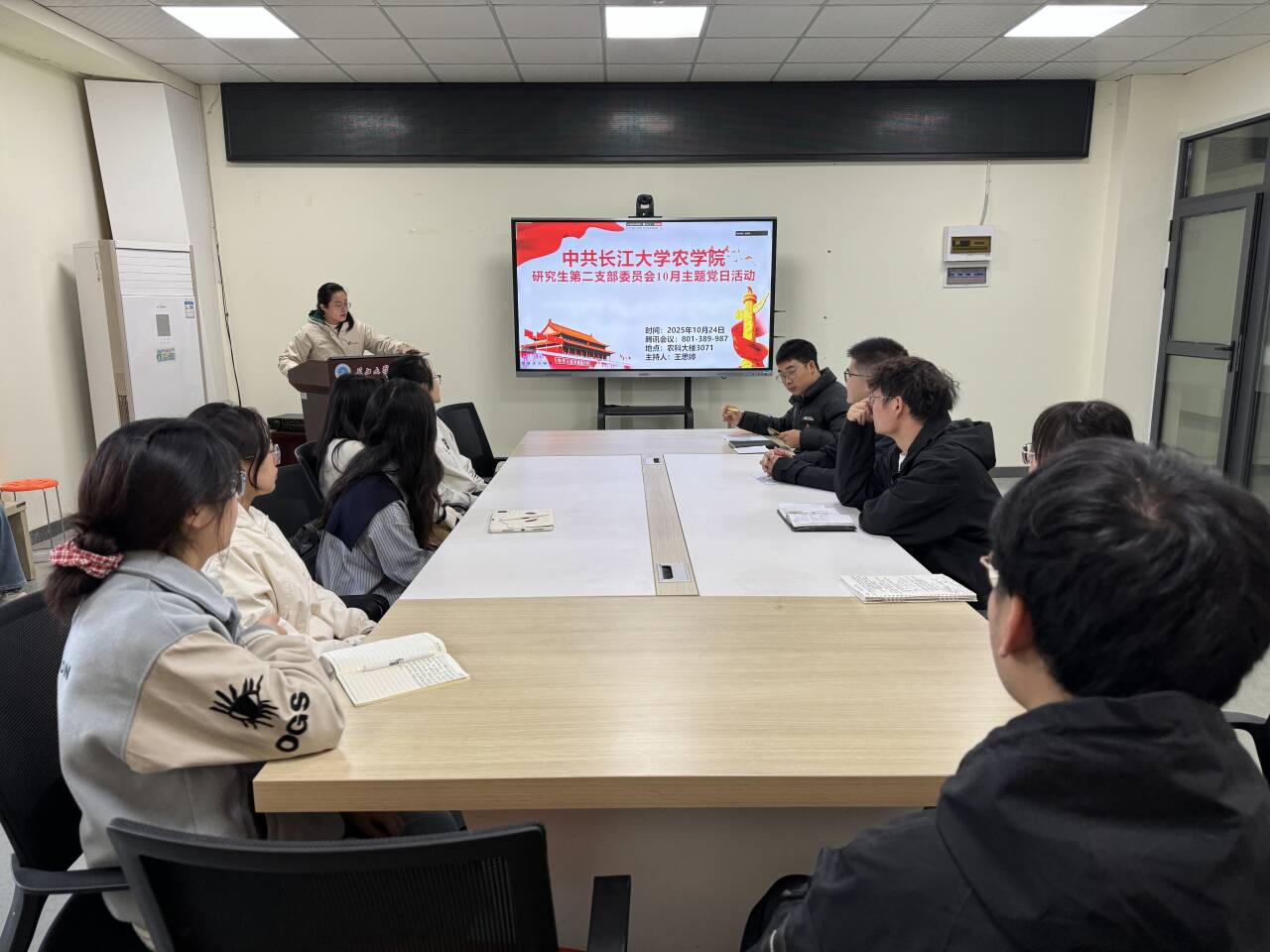 (通讯员 任娇 李嘉萍)10月24日,公司研究生第二党支部在农科大楼3071会议室开展10月份主题党日活动,活动结合腾讯会议(ID:655 880 636)同时在线上召开。全体在公司党员和校外联培党员共同参与,活动由王思婷同志主持。