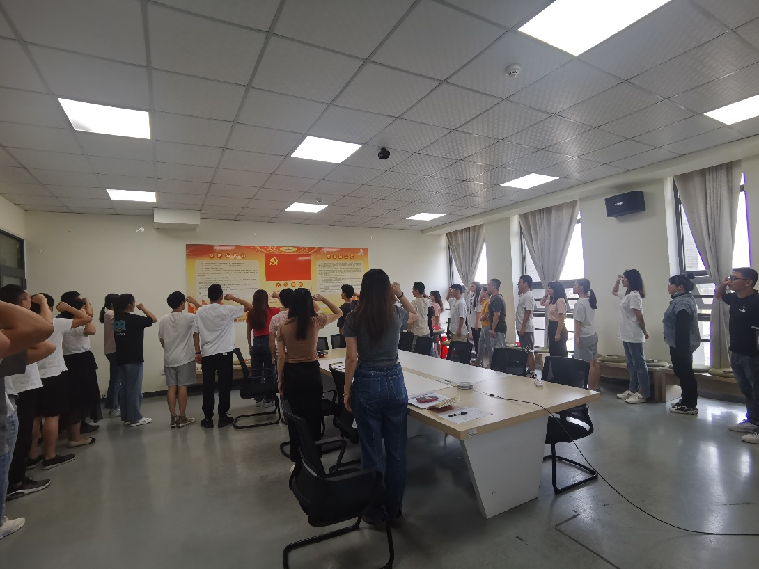 会议伊始,全体党员重温入党誓词,并交纳本月党费。