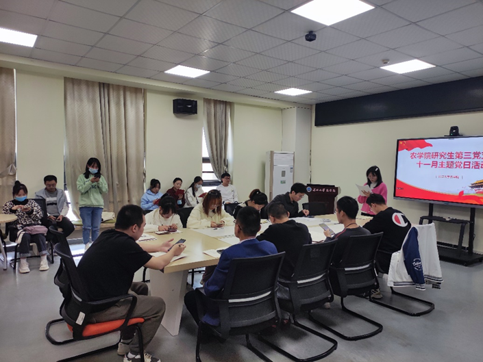 (通讯员 邹宇傲)11月17日中午12:30,公司研究生第三党支部在农科大楼3071开展11月主题党日活动暨支委会选举仪式。活动结合腾讯会议的方式开展,全体在公司党员和校外联培党员参与了此次活动,本次活动由支部党员杨彩仙同志主持。