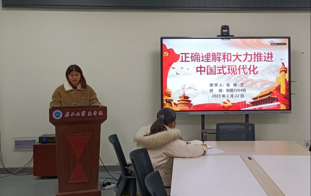 接着,全体党员以“作为一名党员,应当如何发挥‘拼字当头 实干为要’的精神?”为主题展开研讨。周仁迪同志从“拼字当头 实干为要”的前提展开论述,认为我们要学好本专业的知识,专心科研,为实现农业农村现代化而不懈奋斗,为国家粮食安全贡献自己的一份力量。何泉龙同志谈到,拼字当头在于有明确的目标,并朝着目标不断前进;实干为要则是把每件事情做到实处,才能朝着既定的目标越走越远。