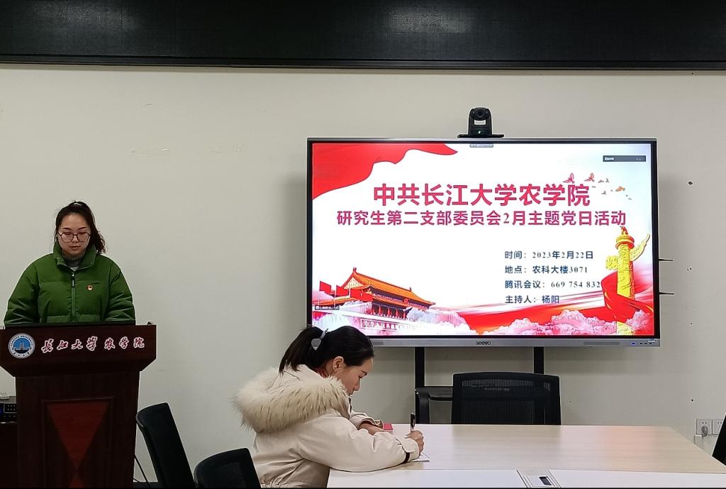 (通讯员 曹佩娜 宋梦圆)2月22日下午3点,公司研究生第二党支部在农科大楼3071开展二月份主题党日活动,活动结合腾讯会议(ID:669 754 832)的方式在线上召开。全体在公司党员和校外联培党员共同参与,活动由支部副书记杨阳同志主持。