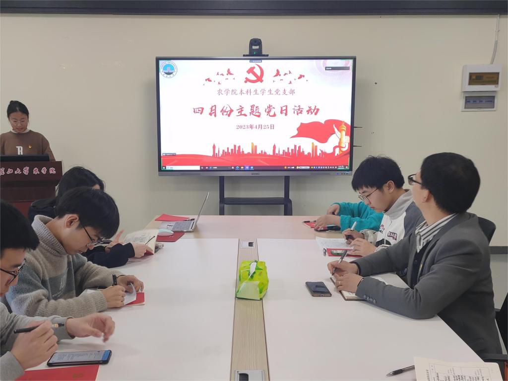 (通讯员 亢凯)4月25日中午12:20,公司本科生员工党支部在农科大楼3071会议室开展四月主题党日活动,支部党员均参加本次主题党日活动,本次活动由支部党员牛彤彤同志主持。