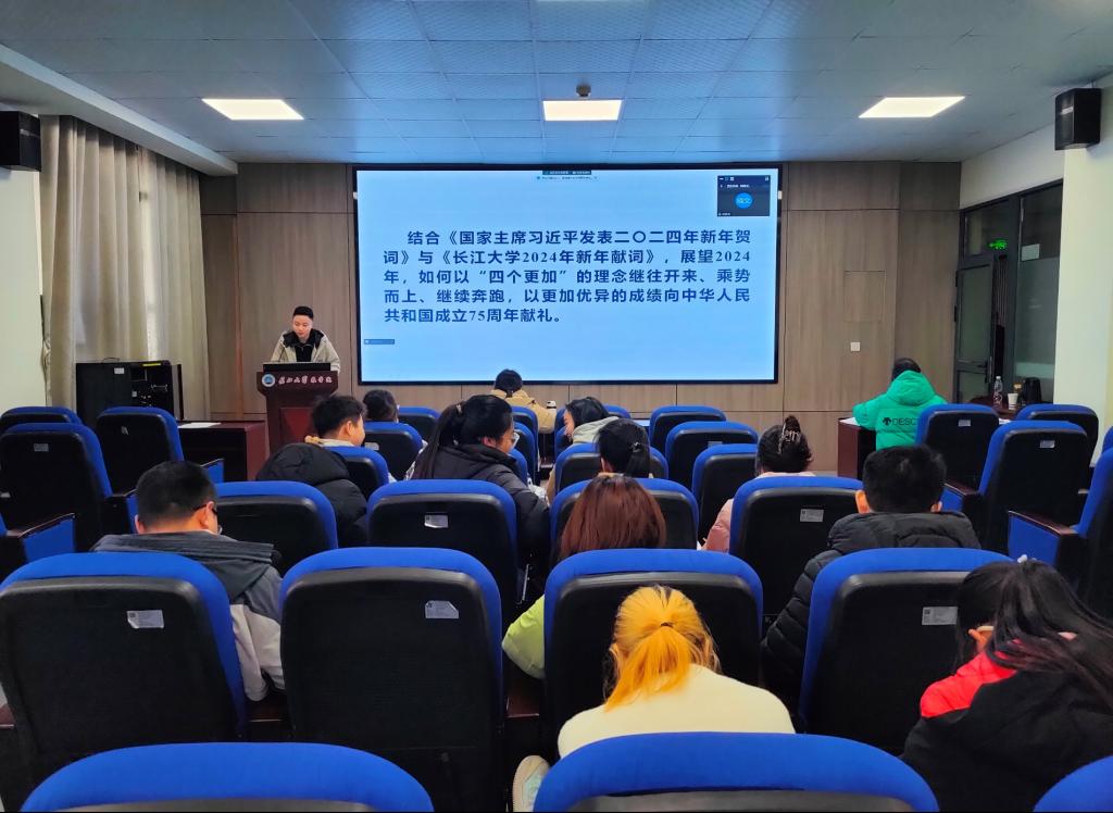 最后,支部书记付雪娇同志作总结讲话,她表示过去的一年是充满挑战、收获颇丰的一年,在全体党员的共同努力下,本支部成功创建“湖北省研究生样板党支部”、荣获荆州市“十佳主题党日活动”提名奖、荆州市“红旗党支部”等多项荣誉。付雪娇指出,2024年是党支部验收之年,全体同志要围绕样板党支部建设任务开展工作,她希望同志们以更高标准严格要求自己,在各方面挺鹰担当、做好表率、踔厉奋发、勇毅前行,继续发扬吃苦耐劳、艰苦奋斗的工作作风,党支部在新的一年,力争取得新的成绩与突破。
