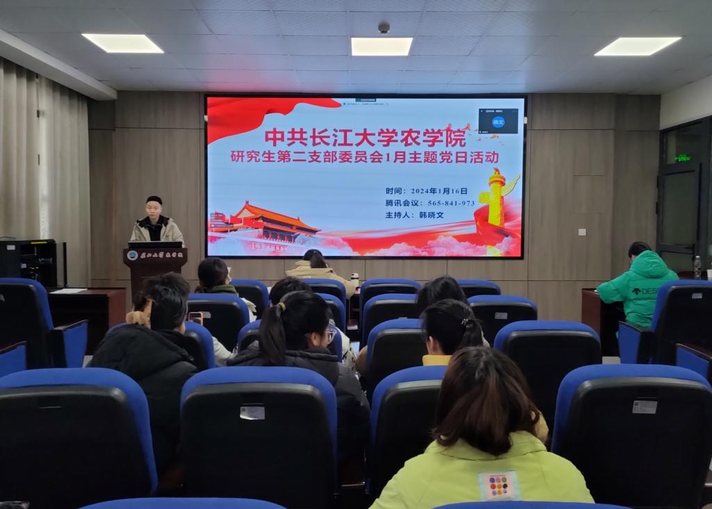 (通讯员 宋梦圆)1月16日,公司研究生第二党支部在农科大楼3073开展一月份主题党日活动,活动结合腾讯会议(ID:565 841 973)的方式同时在线上召开。全体在公司党员和校外联培党员共同参与,活动由韩晓文同志主持。