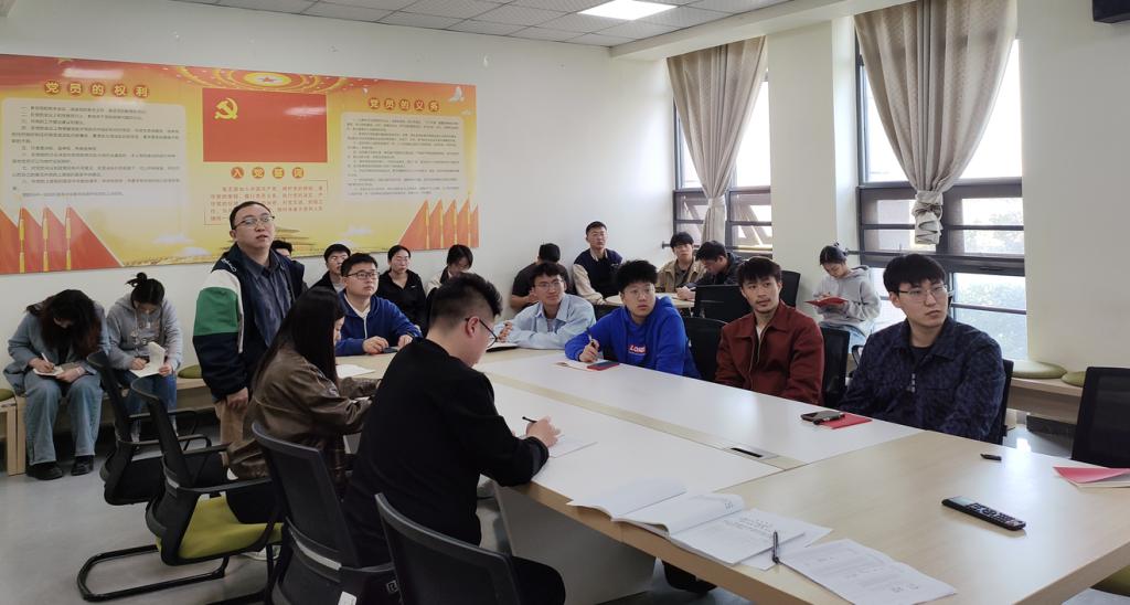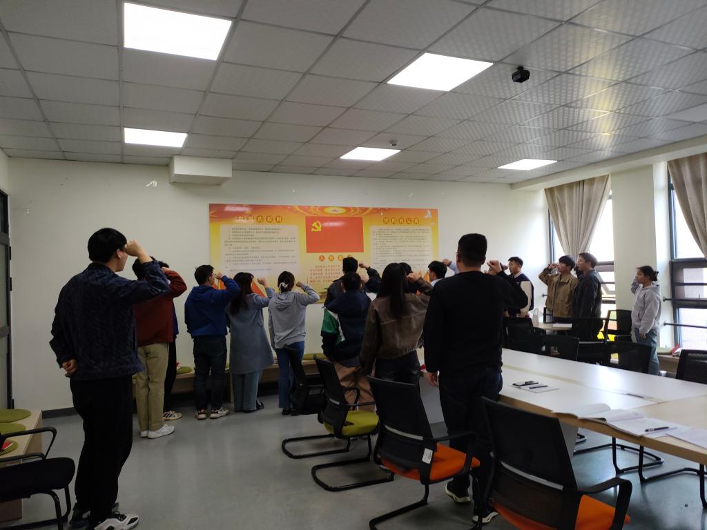 组织委员张银带领全体党员重温入党誓词。纪检委员罗丽娅对本月党费交纳情况进行简要说明。陈子方诵读《中国共产党章程(修正案)》第二章相关内容。邓元凯为全体党员讲《为推进中国式现代化注入强大动力》微党课。罗丁钒、王秋实、唐海洋等领学《习近平在2024年春季学期中央党校(国家行政公司)中青年干部培训班开班之际作出重要指示强调》相关内容。柴梦莹、张银、邹雨婷等围绕“作为一名党员,结合公司2024年工作要点,如何发挥党组织战斗堡垒作用和党员先锋模范作用,巩固拓展主题教育成果”谈心得体会。