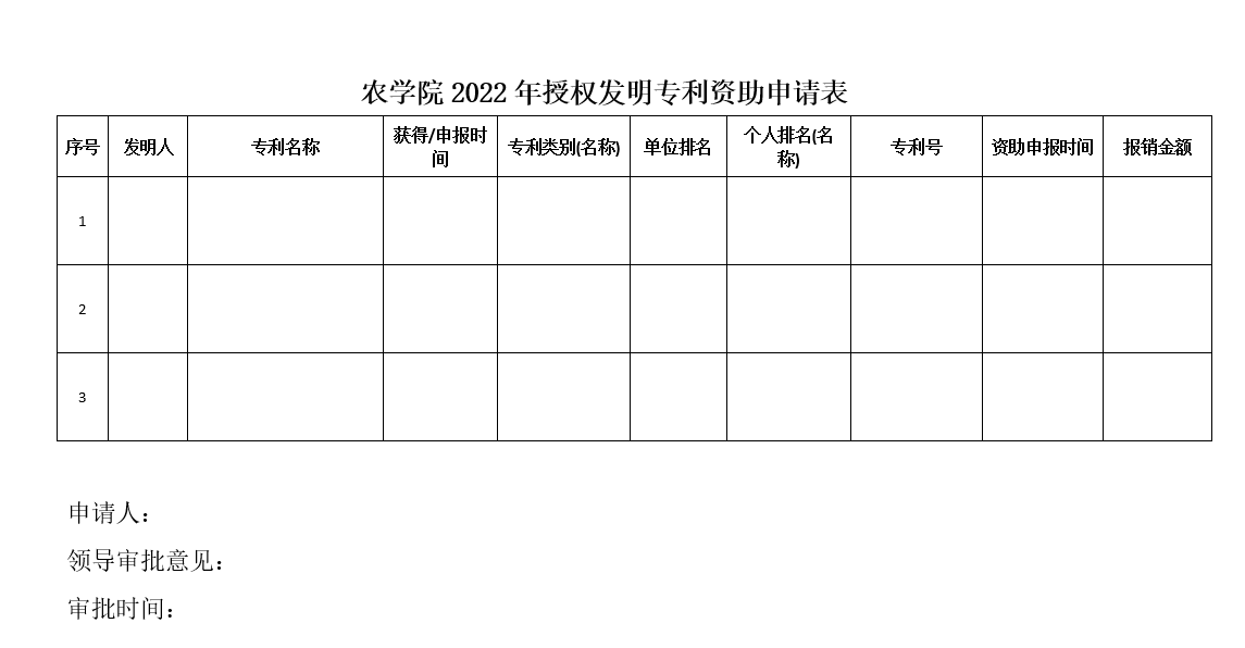 2022年授权发明专利资助申请表