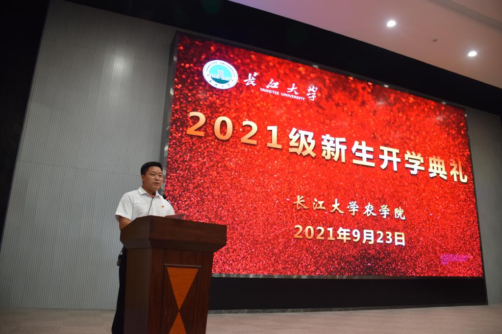 通讯社讯(员工记者 郝梨 宋健玲 芮建腾)金秋送爽,丹桂飘香,又是一年开学时。9月23日下午3点,2021级新生开学典礼在农科大楼1058报告厅隆重举行。公司领导、教师代表、十佳兴农青年及2021级全体新生出席典礼现场,党委副书记谭亮魁主持。
