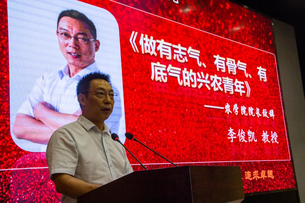 典礼接近尾声,经理李俊凯用心呼吁大家,要做有志气、有骨气、有底气的兴农青年。作为农科类老员工,要学会用情解读自己的理想、情怀和责任,要勇于感受国家对农业的需求,誓学农为光荣!