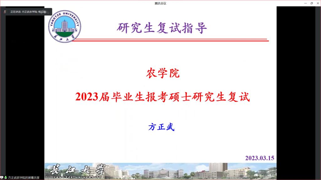 随后,一志愿录取中国农业大学的22级毕业生李清、公司22级研究生赵伟以及调剂到新疆农业大学的22级毕业生汪炜檬,分别以自己的真切经历从复试的准备工作、复试资料、复试中可能出现的问题及调剂需做的准备向同学们进行深刻详实的讲解,帮助同学们对复试及调剂有了进一步的了解。