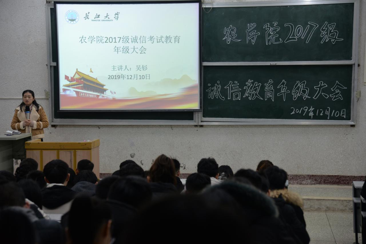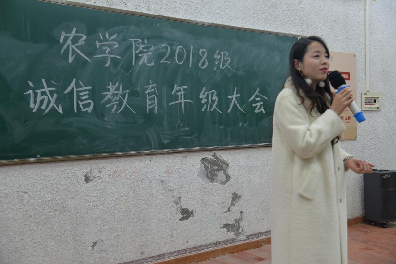 “诚实守信向来是中华民族的优良传统,标志着社会的文明进步,是公民需要遵守的基本道德准则和必须具备的基本素质,作为一名老员工,我们更应该时刻严于律己,诚信待人。”辅导员万钰于5教203对在座的18级本科生如是说道。