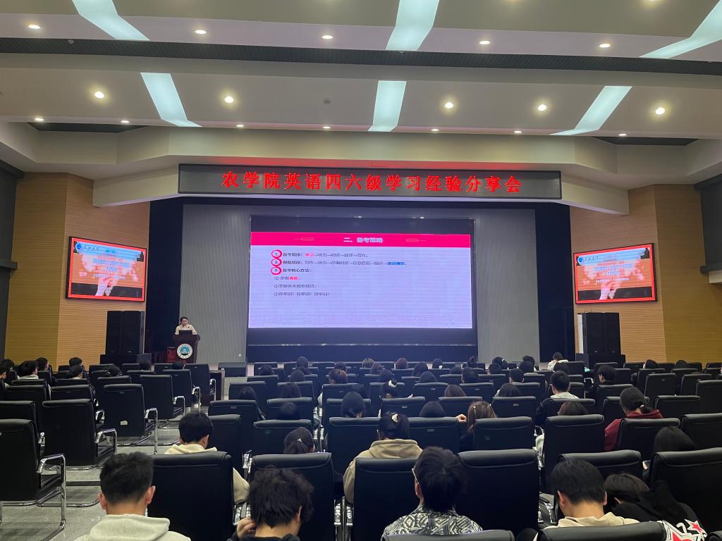 (见习记者 赵雨洁/文 向建华/摄)为加强学风建设,帮助员工认真备考英语四、六级,提供高效英语学习方法,提升四、六级考试的应试技巧,公司于3月20日19:00在农科大楼1058报告厅开展了英语四、六级学习经验分享会。此次经验会的主讲人为辅导员唐玉婷,大一全体新生参与此次会议。