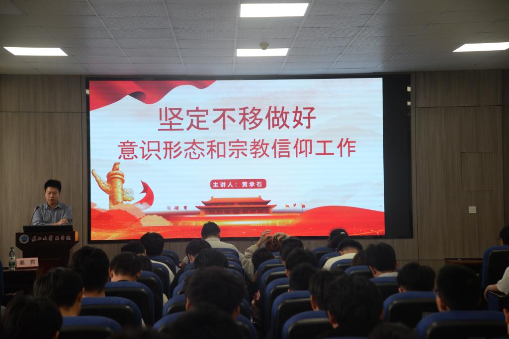 接着,学工办主任黄承石坚决表态:坚定不移做好意识形态和宗教信仰工作。对于宗教信仰问题,各寝室长要及时关注,及时沟通。他强调正确的意识形态有助于员工成长,有利于国家长治久安。