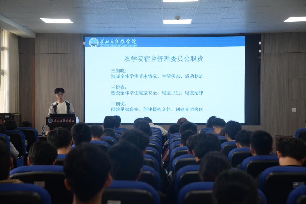 首先,由宿委会副主任刘佳豪进行发言。他从认识宿委会,宿委会成员介绍,宿委会工作介绍 ,必一运动官网提出工作要求,安全委员的职责,对安全委员的工作要求这六方面展开叙述。明确了寝室建设细则,例如“三知晓、三检查、三创优”并对员工在寝生活提出具体要求。