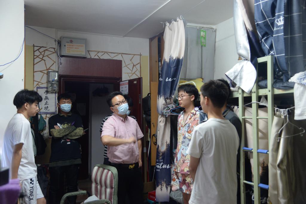 通讯社讯(见习记者 姚攀/摄 杨静/文)为进一步强化疫情防控下员工的健康安全防范意识,了解员工的校园生活和学习状况,424日晚上9:00,党委副书记尹小华、学工办主任刘庆、团委书记侯聪、研究生辅导员林香亮以及21级兼职辅导员杨成杰深入走访了本科生和研究生寝室。