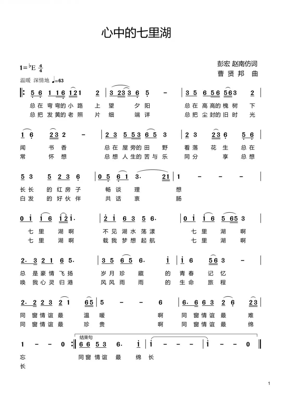 彭宏君为筹备大学同窗40周年聚会,写下了诗歌《心中的七里湖》,著名作曲家曹贤邦老先生为其配曲,曲调优美,极尽抒情。豫娥同学拿到曲谱,等不及音乐做好,便试唱录音。她把录音发在群里,唱的还很是那么一回事。早上躺在床上,把录音听了一遍又一遍,完全溶入在歌曲的情感中,不能自己。